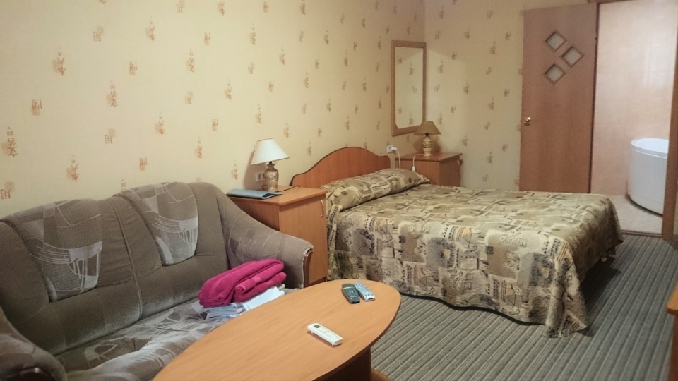 В номере: телевизор, кондиционер, холодильник, телефон, набор посуды, санузел, душ, сейф, кресло-кровать.